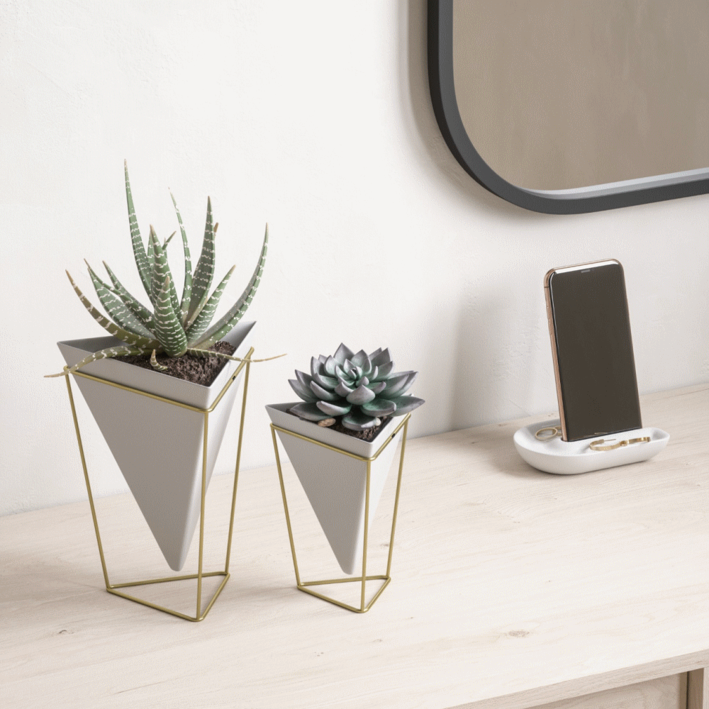 Два настольных керамических кашпо на металлических подставках. Кашпо подойдут для комнатных растений, цветов, канцелярских принадлежностей, хранения мелочей, а также будут стильным предметом интерьера офиса или квартиры.